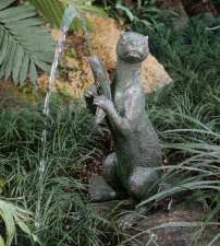 Fischotter "Otto" mit Fisch, wasserspeiend